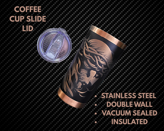 LASER ENGRAVED JESUS TUMBLER- BLACK AND BRONZE 20 OZ